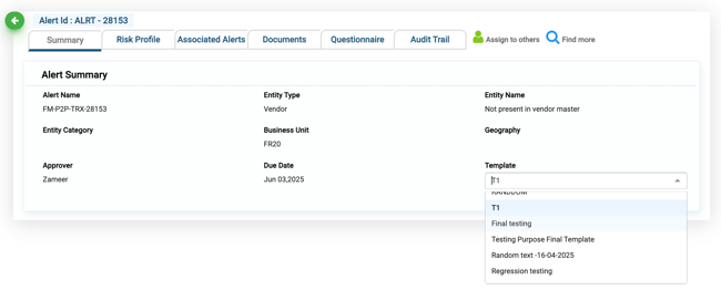 A list of the questions based on Risk/module and alert entity is displayed for the reviewer. Click on the links to open the respective questions.