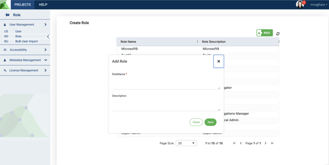 The konaAI application lets you create new roles for your project and edit permissions based on your project requirements.