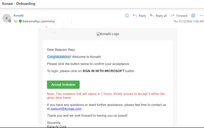 - The email link will direct the user to the konaAI application where a pop-up on the screen will ask to “Create New Password”.