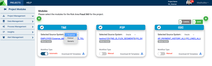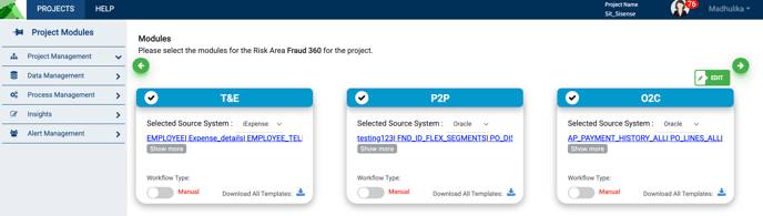 - Click on Save to include all the selected modules to your project. This action enables you to extract various data templates for these sub modules.
